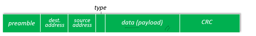 - preamble : 클럭속도 동기화를 위해 사용, 끝에 10101011 이렇게 11 바이트와서 preamble이 끝남을 의미함