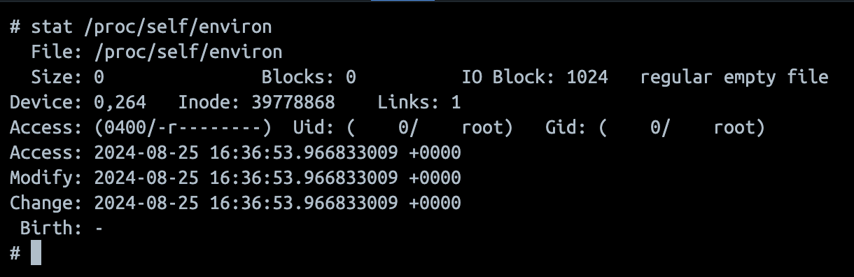 그리고 /proc/self/environ의 stat을 보면 다음과 같다.